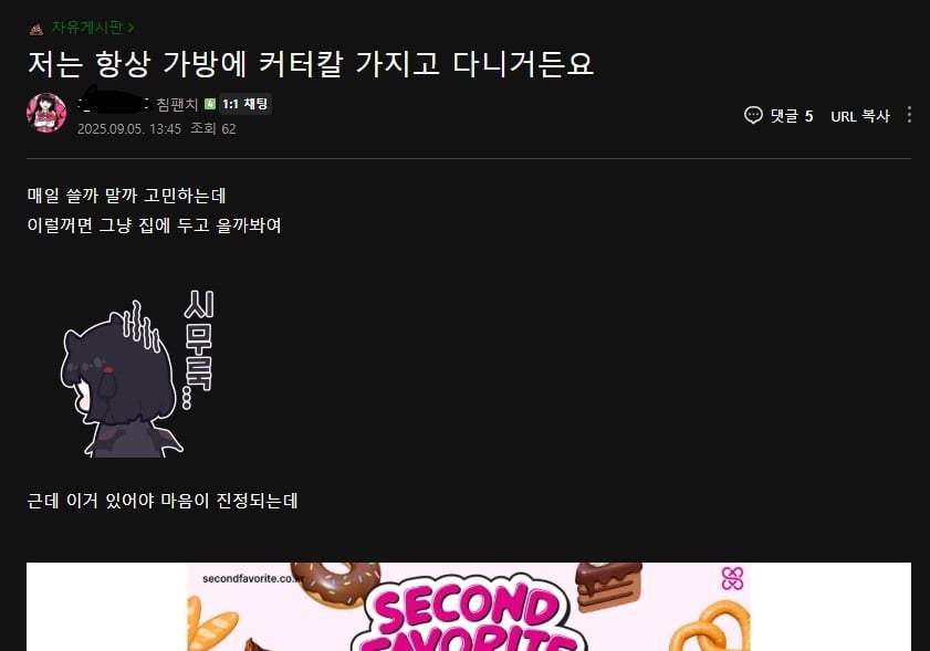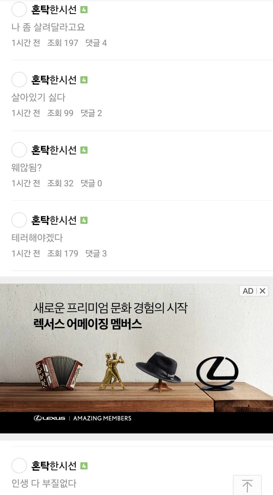 방금자 경찰에 신고 접수된 왁물원 유저 작성자 정보 데커드랄프 작성 작성일 2025.09.05 22:17 컨텐츠 정보 249 조회 목록 관리 글수정 글삭제 답글 본문 리와인드 2차 정상화 사태로 멘붕이 왔는지 커터칼 타령을 하는 왁세돌 팬...여기까진 흔한 중2병 시기의 뻘소리인 줄 알았으나 작성 글 제목들이 뭔가 심상치 않다. 진짜 어디 아파보이는 모습에 쎄함을 느끼고 바로 경찰에 신고한 굴까갤럼...경찰도 얼마 전 신림동 사건 등이 있어서 그런지 무시하지 않고 적극적인 모습 왁세돌은 당신의 인생이 아닙니다...부디 해프닝이길 바랍니다. 관련자료 이전 ??? : 롯데 팬분들 안녕하신가요 작성일 2025.09.05 22:54 다음 군대에서 헌혈할 때 사은품을 안주는 이유 .jpg 작성일 2025.09.05 22:04 댓글 0 등록된 댓글이 없습니다. Select File Upload File 목록 관리 글수정 글삭제 답글