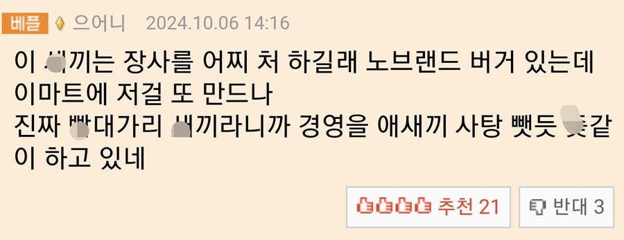 이마트가 햄버거 출시 한다는 소식에 빡친 사람.jpg 작성자 정보 곽튜브 작성 작성일 2024.10.08 08:41 컨텐츠 정보 193 조회 목록 관리 글수정 글삭제 답글 본문 관련자료 이전 BTS 정국 슈퍼볼 하프타임쇼 초대받았지만 군입대로 무산 작성일 2024.10.08 08:54 다음 원양어선에서 운 없는 날 반찬 작성일 2024.10.08 08:31 댓글 0 등록된 댓글이 없습니다. Select File Upload File 목록 관리 글수정 글삭제 답글